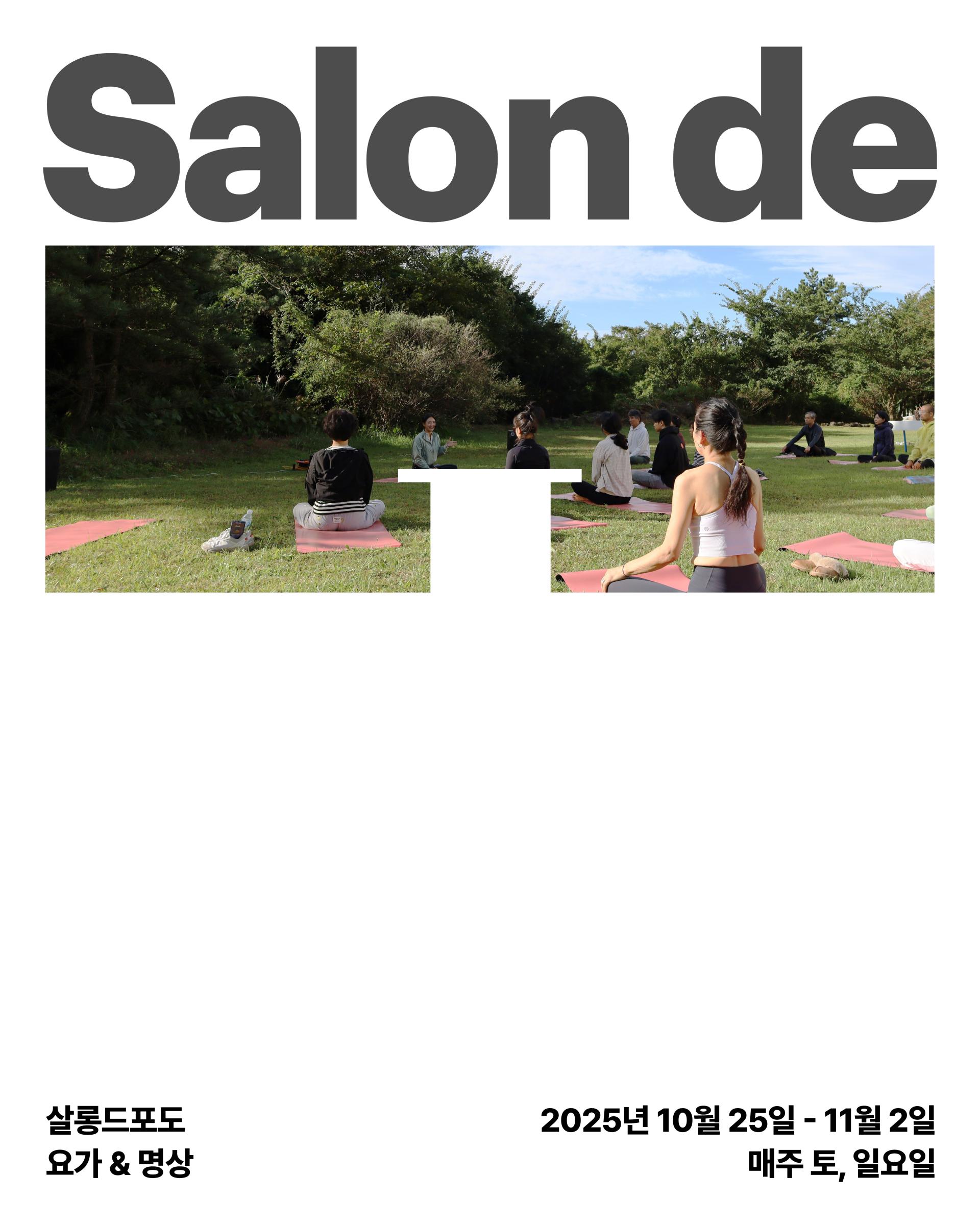 • 일자: 10/25(토)-26(일), 11/1일(토)-2(일) 총 4일, 오전 8시 30분-9시 30분(요가)/오후 2-4시(책읽기)