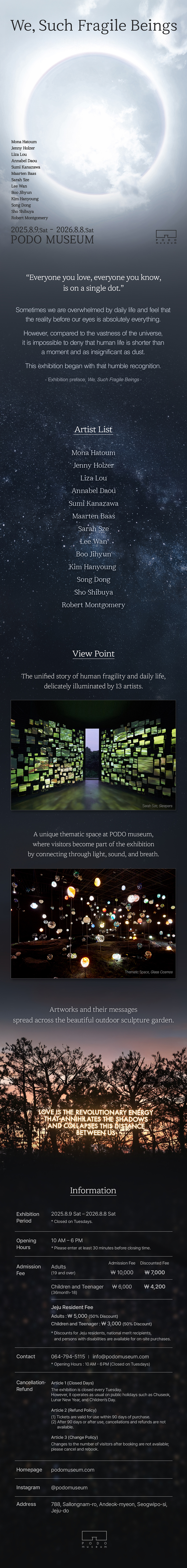 PODO Museum presents the exhibition Our So Small Existences from August 9, 2025, to August 8, 2026. This exhibition explores the fleeting lives of small and fragile beings living within the vastness of the unseen world, as seen through the perspectives of 13 artists.